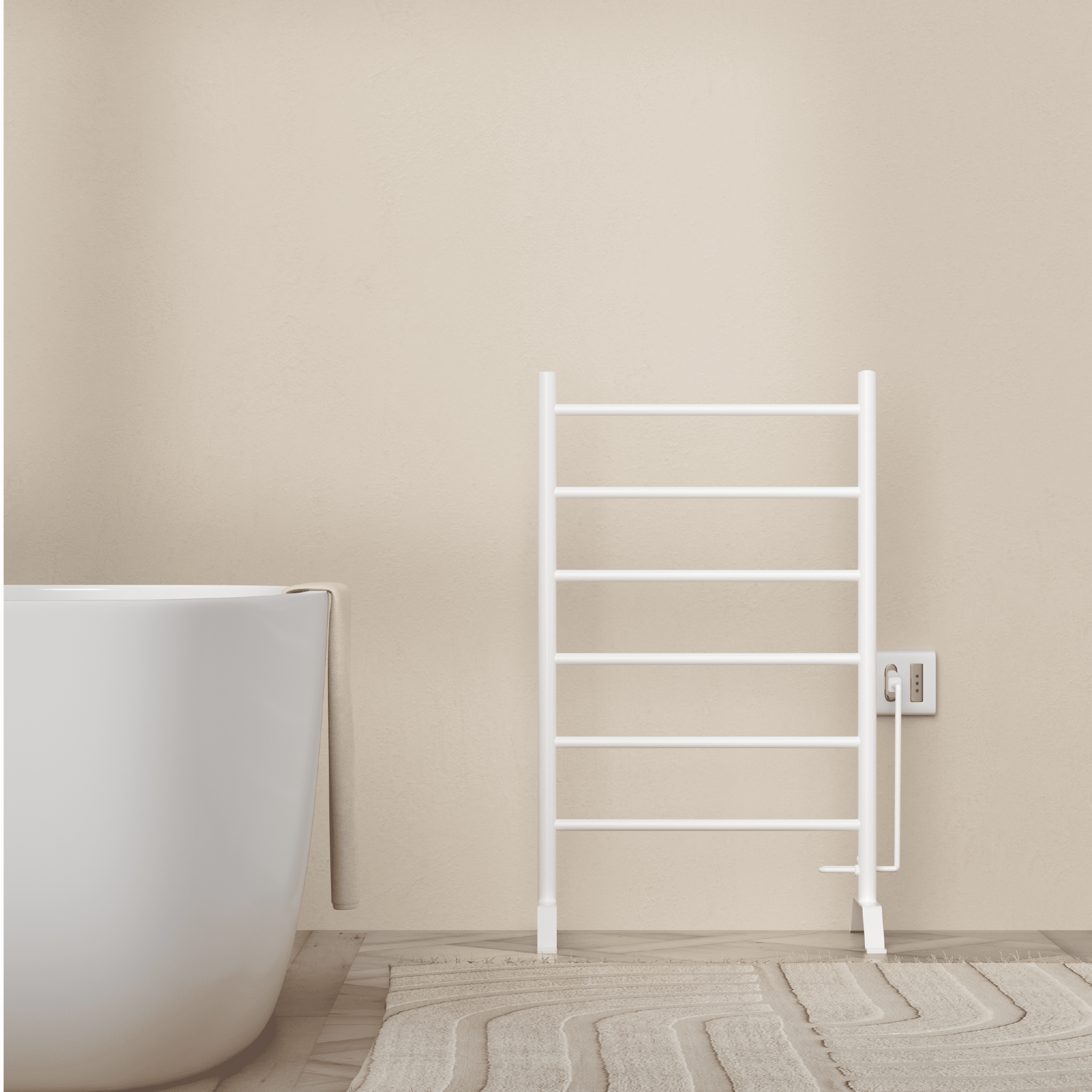 El modelo Vico calienta tu espacio y seca varias toallas a la vez con estilo y eficiencia. Disponible en elegante blanco o negro.