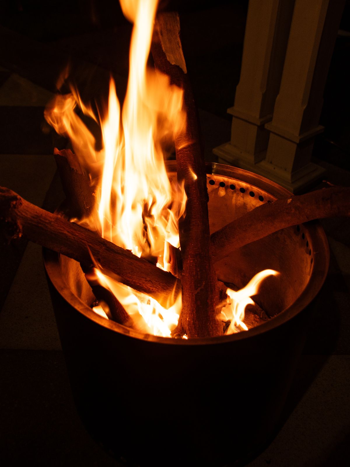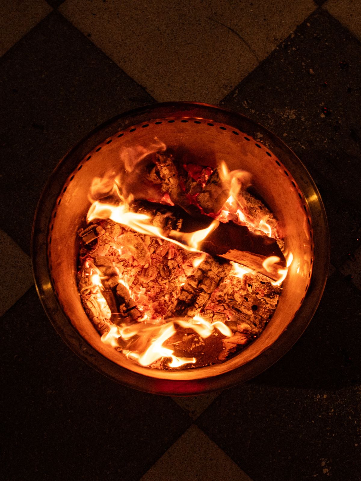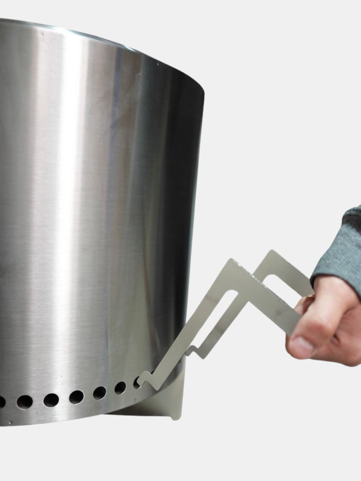 El diseño de nuestro Brasero canaliza el aire desde el fondo del brasero, haciéndolo subir por la doble pared de acero inoxidable. Después de unos minutos, el brasero se calienta y el oxígeno que pasa por el interior se calienta y regresa a la cámara de combustión a través de orificios superiores. Esto mezcla el oxígeno con el humo, provocando una doble combustión que reduce el humo y produce una llama potente