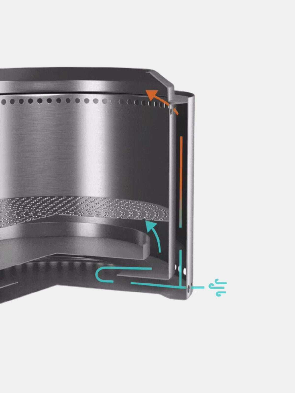 Con un sistema de flujo de aire de 360° y una estructura de doble pared equipada con orificios de ventilación inferiores, garantizamos que el oxígeno alimente el fuego desde abajo, generando una corriente de aire caliente que envuelve el fuego y reduce significativamente la emisión de humo.